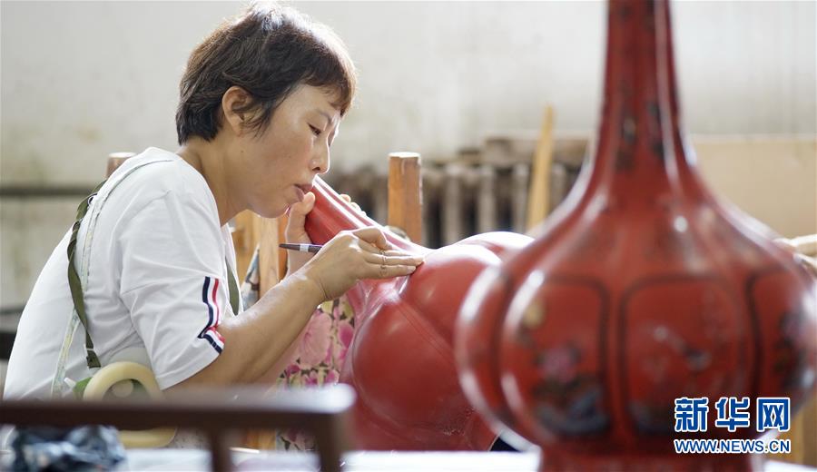 北京金漆镶嵌有限责任公司的技师在制作漆艺瓶(10月31日摄)。新华社记者李欣摄