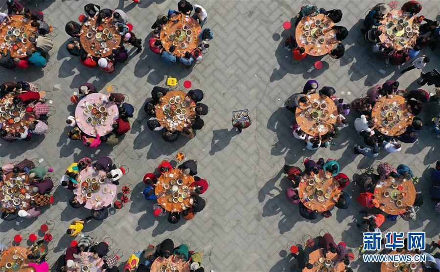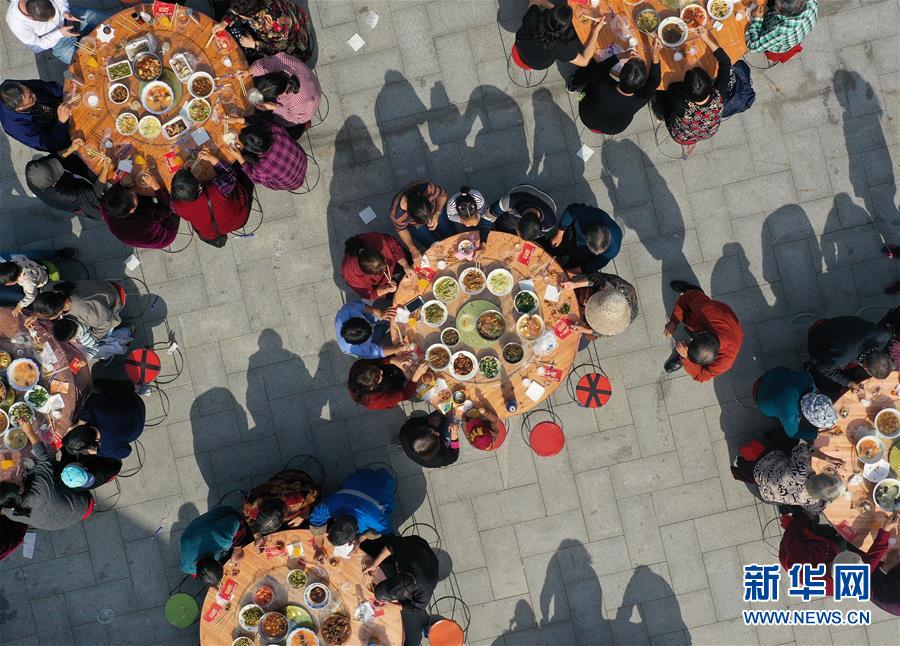 11月2日,南京仙林街道仙林新村社区居民参加千家宴(无人机拍摄)。 新华社记者 季春鹏 摄