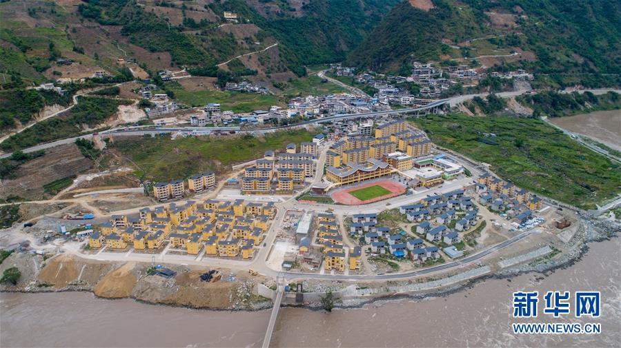 建于怒江边的大兴地镇维拉坝“珠海小区”已初现规模(6月24日无人机拍摄)。新华社记者胡超摄