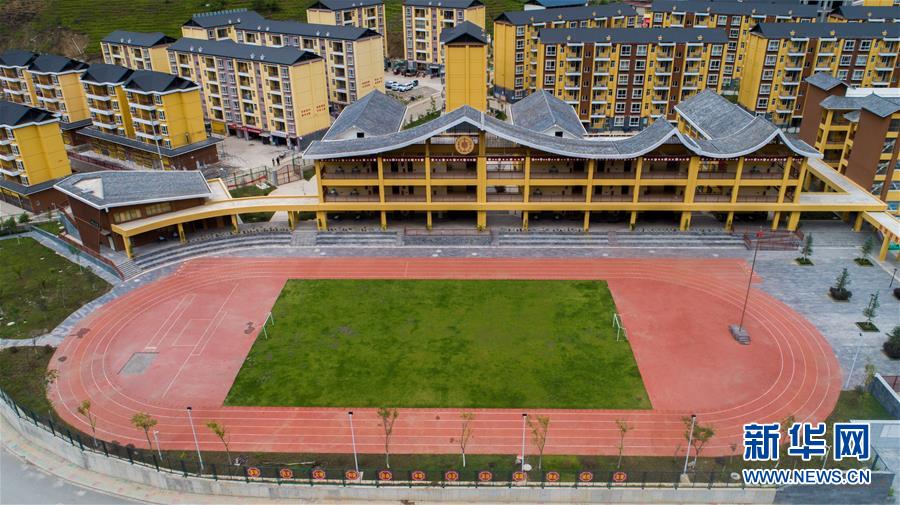 建于怒江边的大兴地镇维拉坝“珠海小区”内的学校和住房已初现规模(6月24日无人机拍摄)。新华社记者胡超摄