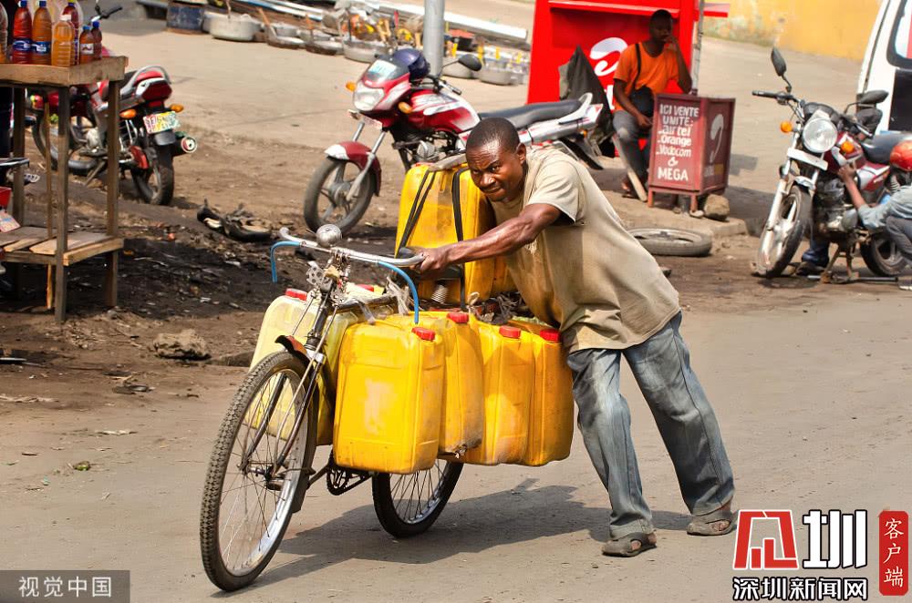 实拍靠自行车赚钱的刚果生意人,货物堆积如山,画面惊险