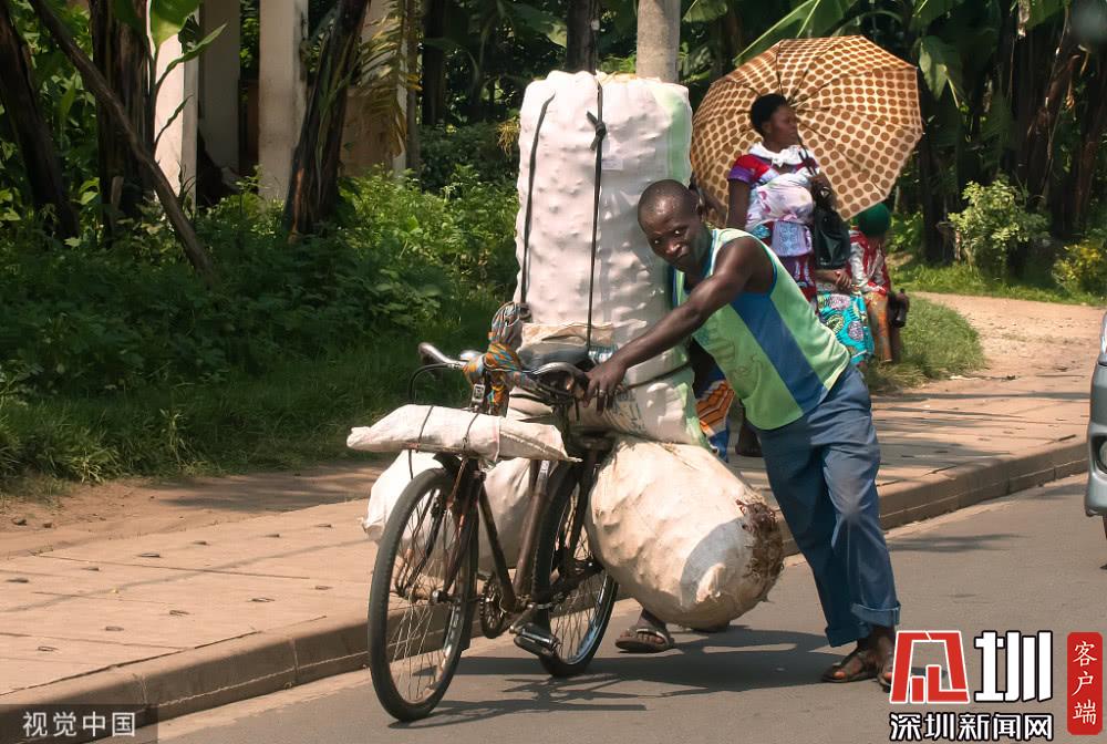 实拍靠自行车赚钱的刚果生意人,货物堆积如山,画面惊险