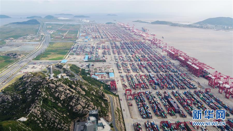 上海洋山深水港(10月16日无人机拍摄)。 新华社记者 丁汀 摄
