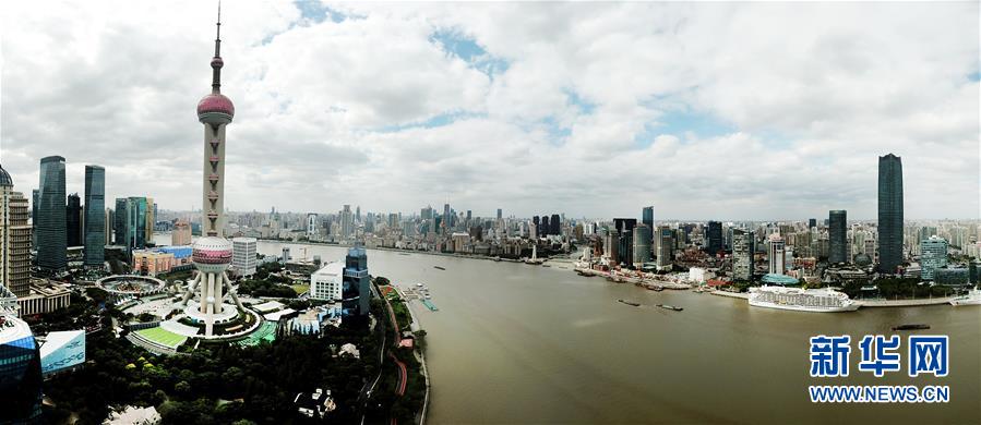 上海浦江两岸的楼群(10月15日无人机拍摄)。新华社记者方喆摄
