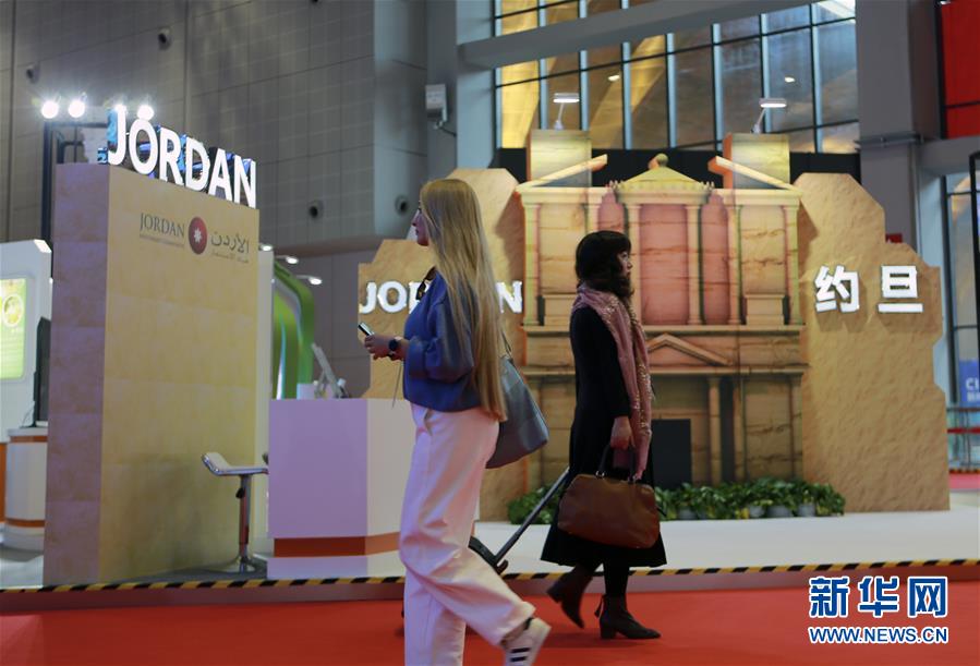 11月5日,参观者走过第二届进博会约旦国家馆。新华社记者郑卫摄