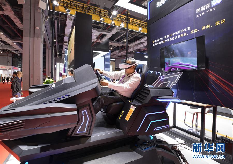 11月5日,一名参观者在第二届进博会科技生活展区体验虚拟现实赛车。新华社记者金立旺摄