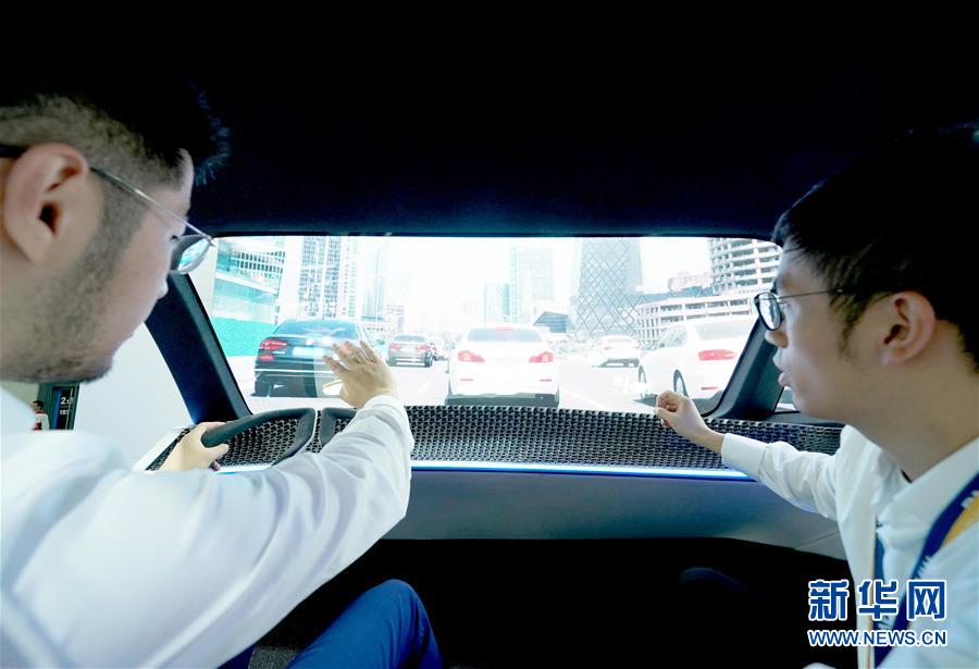 11月5日,在第二届进博会汽车展区,参观者体验韩国起亚汽车驾驶。新华社记者普布扎西摄