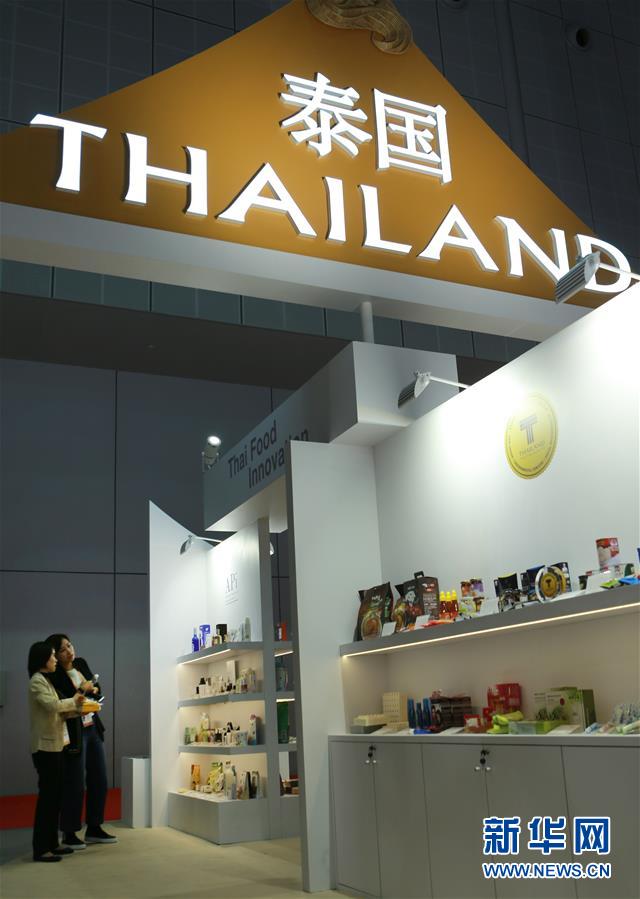 11月5日,参观者在第二届进博会泰国国家馆观看特色产品。新华社记者郑卫摄