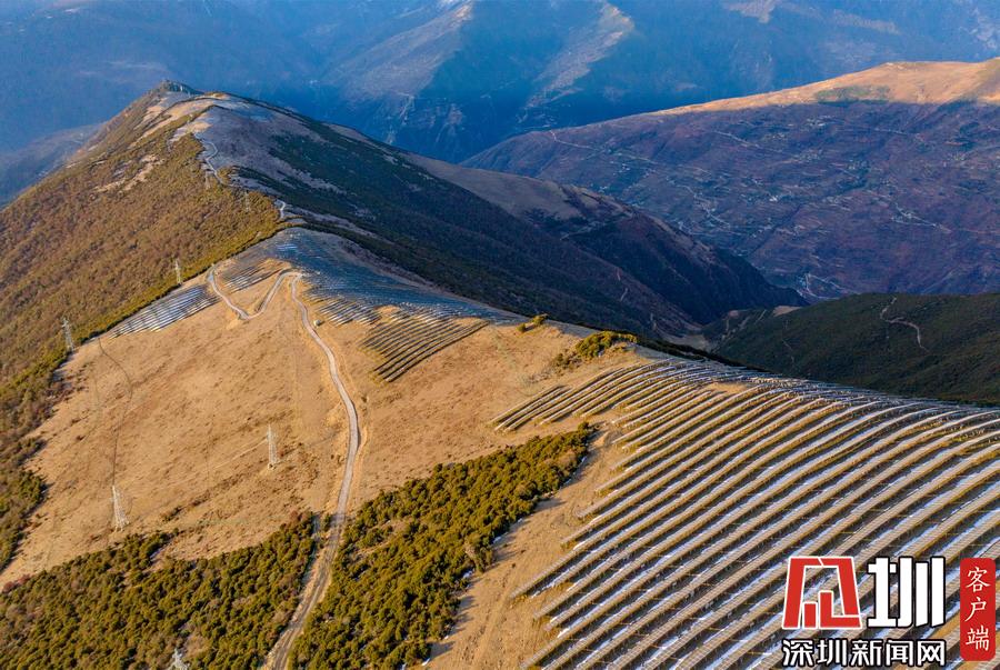 位于海拔3900米的四川省阿坝州小金县大坝口村,场面壮观的光伏发电厂占据了整个山脉。
