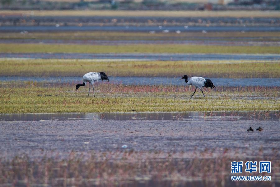 黑颈鹤在纳帕海自然保护区栖息(11月10日摄)。 新华社记者 胡超 摄