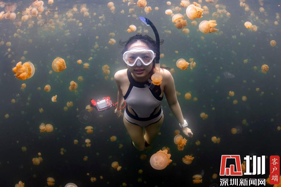 2019年2月14日报道(具体拍摄时间不详),37岁摄影师兼潜水教练Tanakit Suwanyangyaun在泰国曼谷附近海域拍到惊艳一幕,一名女潜水员与数百只水母浪漫共舞,画面十分唯美。图片中,这名女子在水下悠然浮游,数百只水母团团围绕在她的身边,曼妙舞动着优雅的身姿,惊艳唯美令人赞叹。