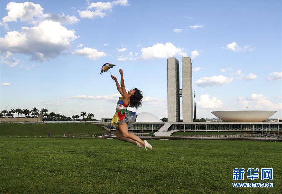 11月10日,一名女孩在巴西首都巴西利亚的国会前练习弗雷沃舞蹈。新华社记者 兰红光 摄