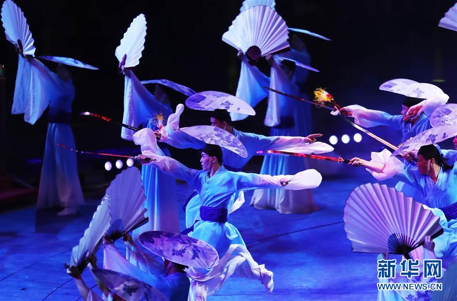 11月16日,演员在第六届中国国际马戏节开幕式上表演节目。新华社记者卢烨摄