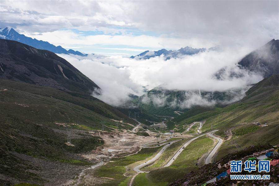这是在川藏公路四川折多山垭口拍摄的曲折回旋的川藏公路(6月28日摄)。新华社记者江宏景摄