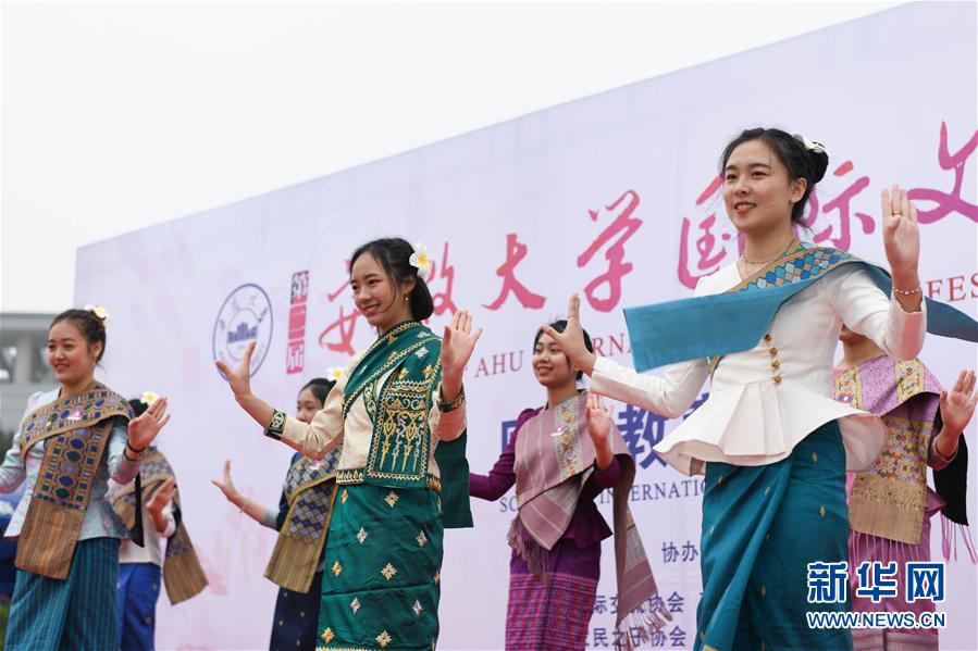 11月17日,来自老挝的留学生在国际文化节上表演舞蹈。新华社记者 张端 摄