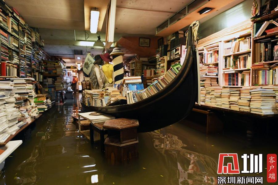 威尼斯水位再度触及1.5米 游客水中用餐沉船书店持续被淹