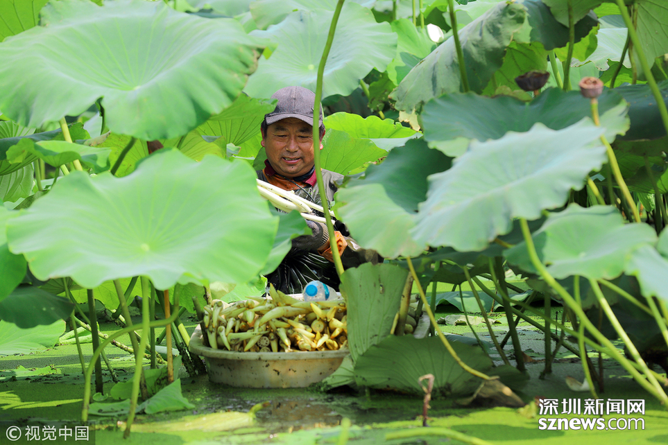 2018年7月25日,江苏淮安,眼下,正值藕带上市时,在洪泽区,藕带畅销供不应求,每亩产量近万元。近年来,洪泽区藕塘种植户们已经形成藕虾共养,荷花观赏的经济链,实现了经济效益“多丰收”。