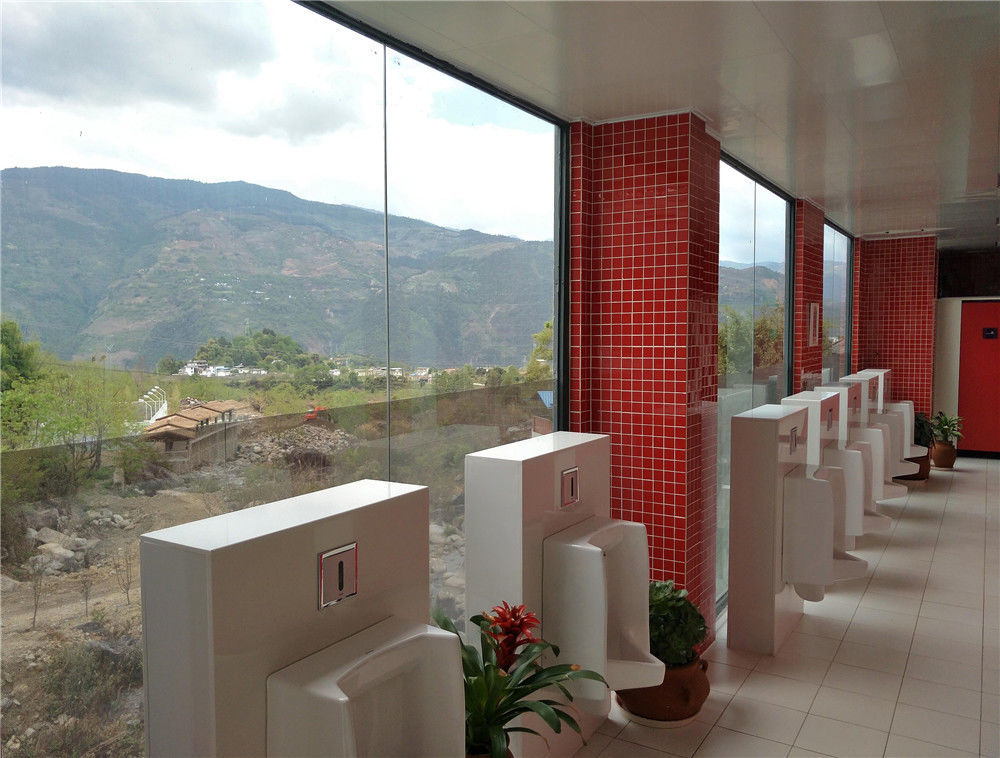 2017年4月7日,云南省大理州石门关景区的透明厕所。厕所外观落地玻璃采用单透膜,让游客边上厕所,还可以边欣赏景区优美的风景。李明/视觉中国