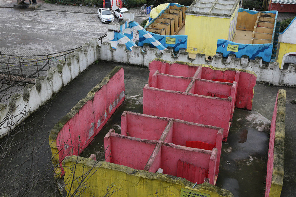 2017年3月15日,重庆,一景区在一处山坡设置了全长850米的童话城堡风格厕所,数百间装修风格各异的男女厕所令人称奇,景区也打出了“最牛的厕所”标语。值得一提的是,这些厕所中不少都是全露天的,从山坡高地向下看,厕所内几乎一览无余。左冬辰/视觉中国