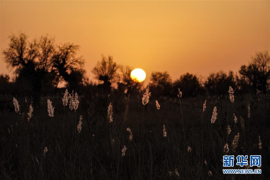 这是在克里雅河沿岸拍摄的夕阳下的芦苇(11月10日拍摄)。 新华社记者 沈伯韩 摄