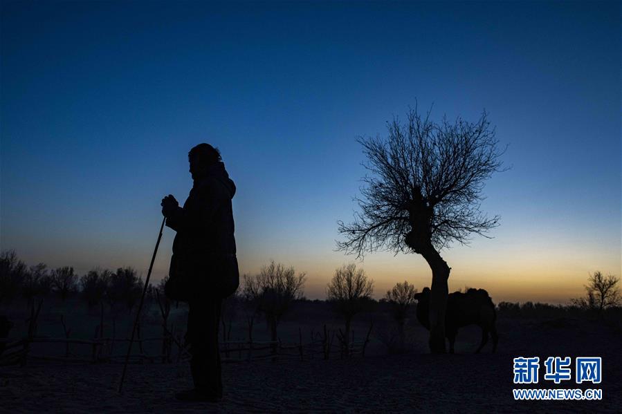 牧民买买提行走在克里雅河畔的胡杨林间(11月14日摄)。 新华社记者 胡虎虎 摄