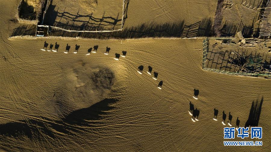 这是在克里雅河沿岸绿洲达里雅布依拍摄的羊群(11月13日无人机拍摄)。 新华社记者 沈伯韩 摄