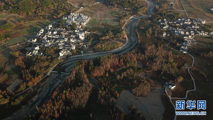 这是11月14日无人机拍摄的安徽黟县塔川风景区。新华社记者张端摄