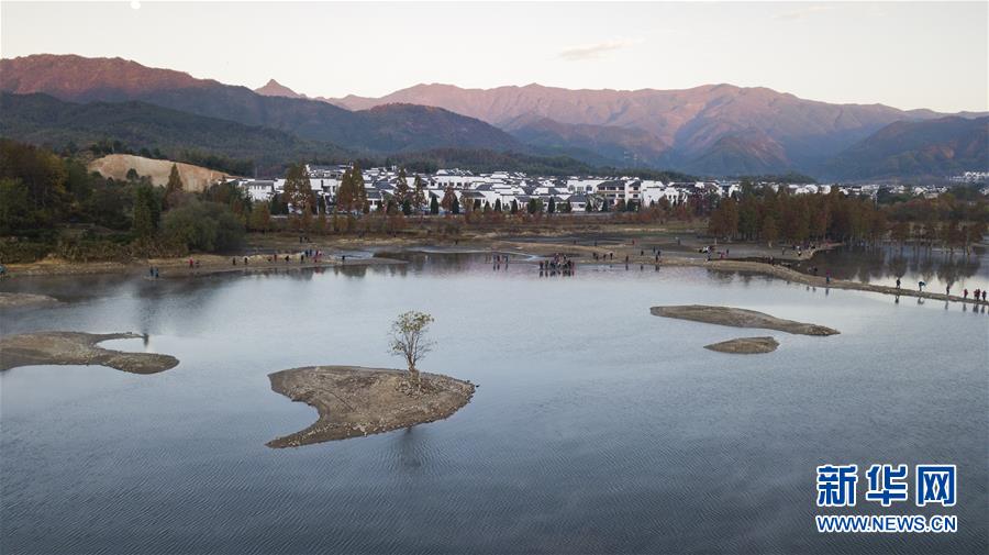这是11月14日无人机拍摄的安徽黟县奇墅湖晨景。新华社记者韩晓雨摄