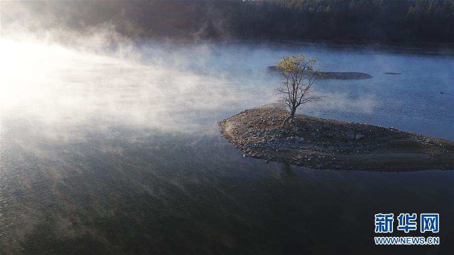 11月14日无人机拍摄的安徽黟县奇墅湖晨景。新华社记者张端摄