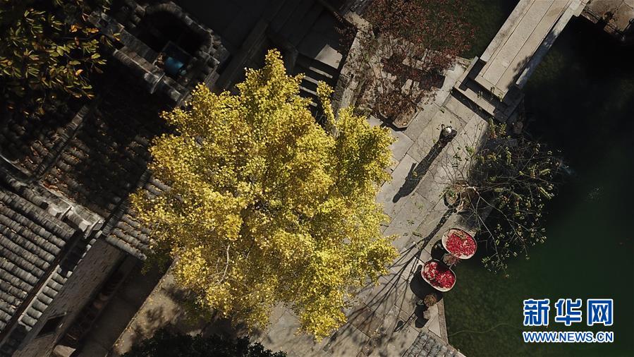 这是11月14日无人机拍摄的安徽黟县塔川风景区一家民宿内景。新华社记者张端摄