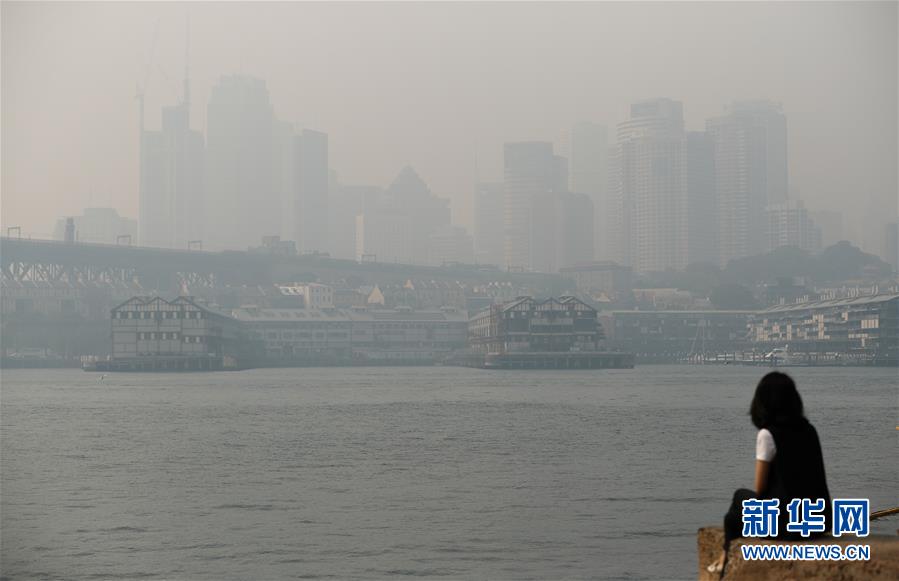 11月21日,在澳大利亚悉尼,林火造成的浓烟笼罩城市。澳大利亚东部近期林火肆虐,悉尼所在的新南威尔士州自进入今年林火季以来,过火面积超过100万公顷。林火造成悉尼浓烟围城,市民生活受到影响。新华社记者白雪飞摄