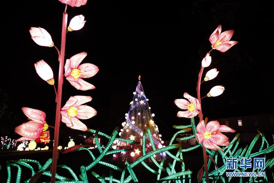 这是11月20日在美国纽约斯塔滕岛第二届纽约花灯游园会上拍摄的花灯。当日,第二届纽约花灯游园会在美国纽约斯塔滕岛开幕,50余组各类花灯照亮夜空,吸引观众前来赏灯游玩。新华社记者李木子摄