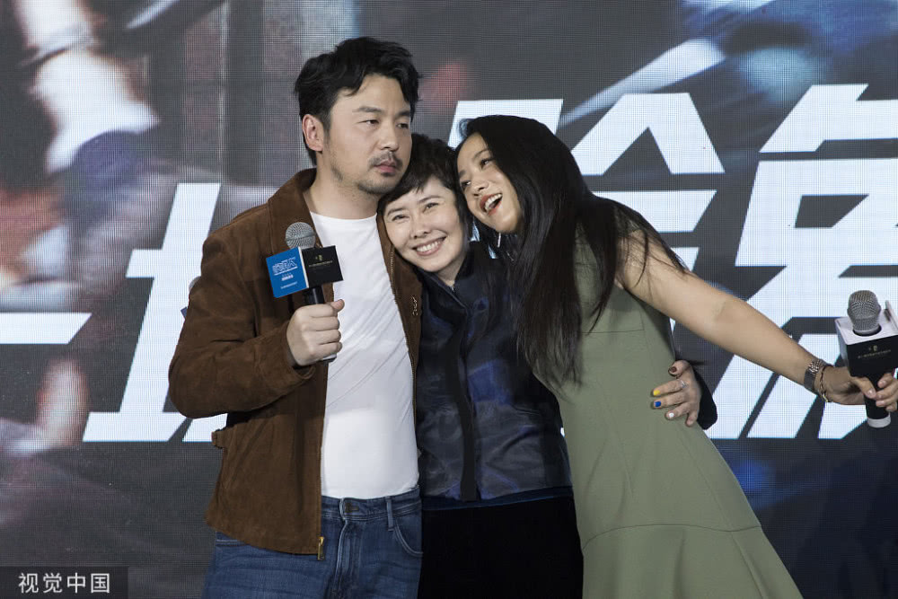 汤唯、雷佳音、薛晓路三人合影时,雷佳音表情太呆萌了,和女导演和女神合影,头都不敢动。