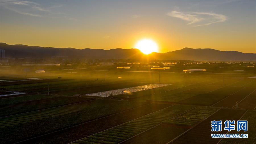 这是云南省玉溪市通海县的田园风光(11月23日无人机拍摄)。初冬时节,云南省玉溪市通海县风景秀丽,山峦、湖水与农田组成了一幅美丽的田园诗画卷。新华社记者胡超摄