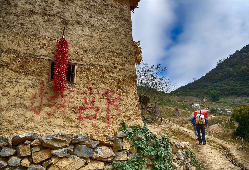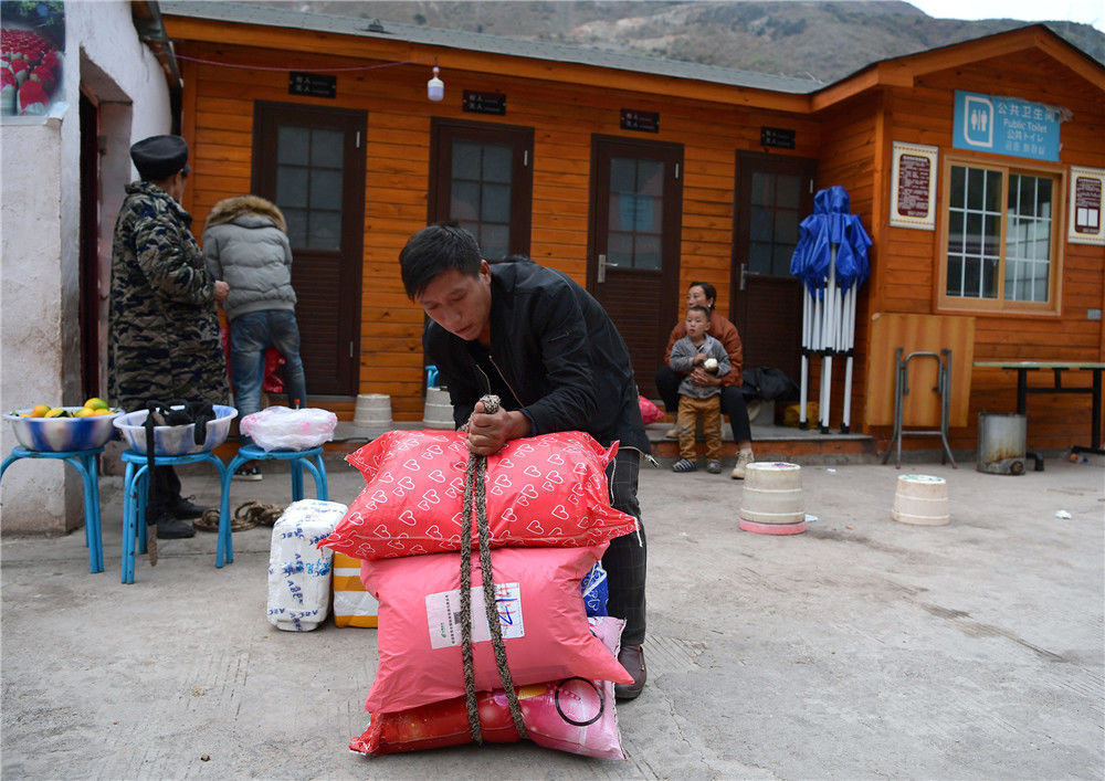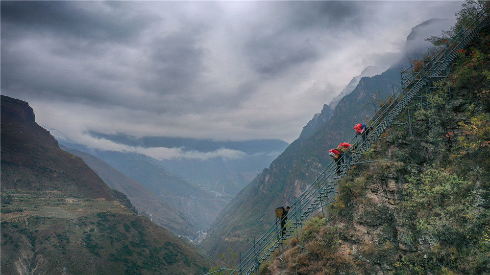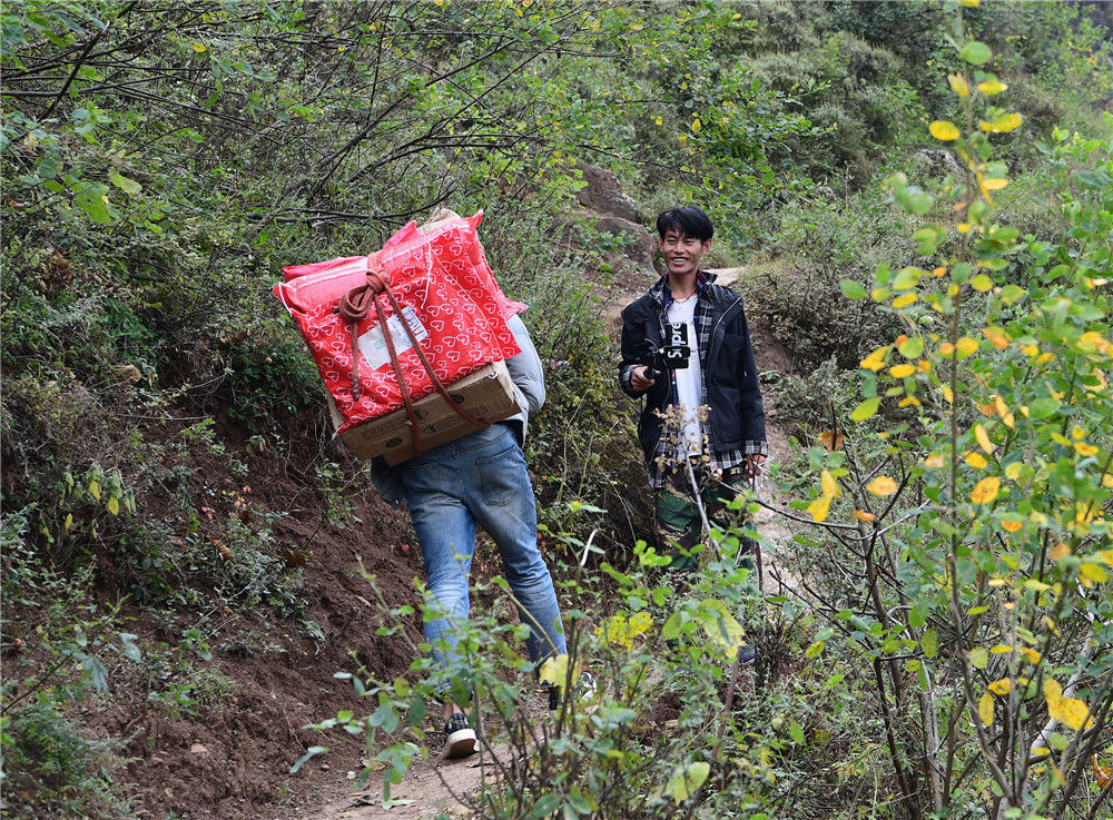 实拍悬崖村的“双十一” 背着快递包裹上天梯