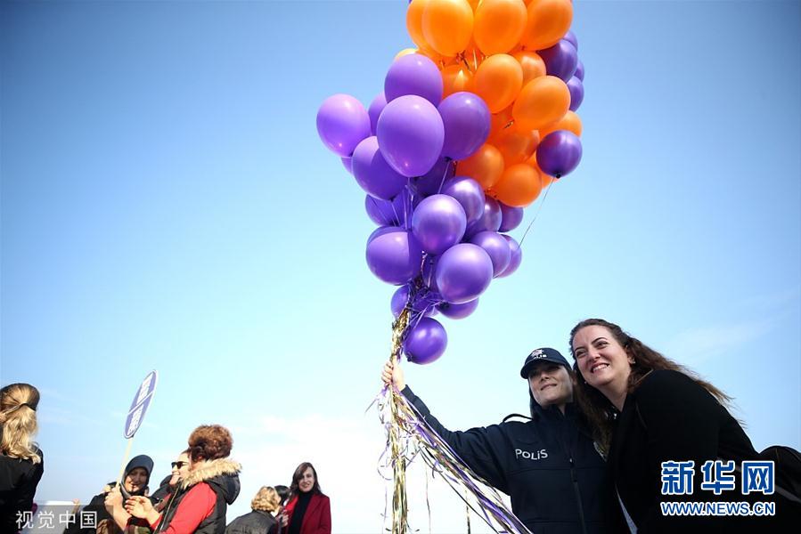 土耳其民众放飞气球纪念“国际消除对妇女暴力日”