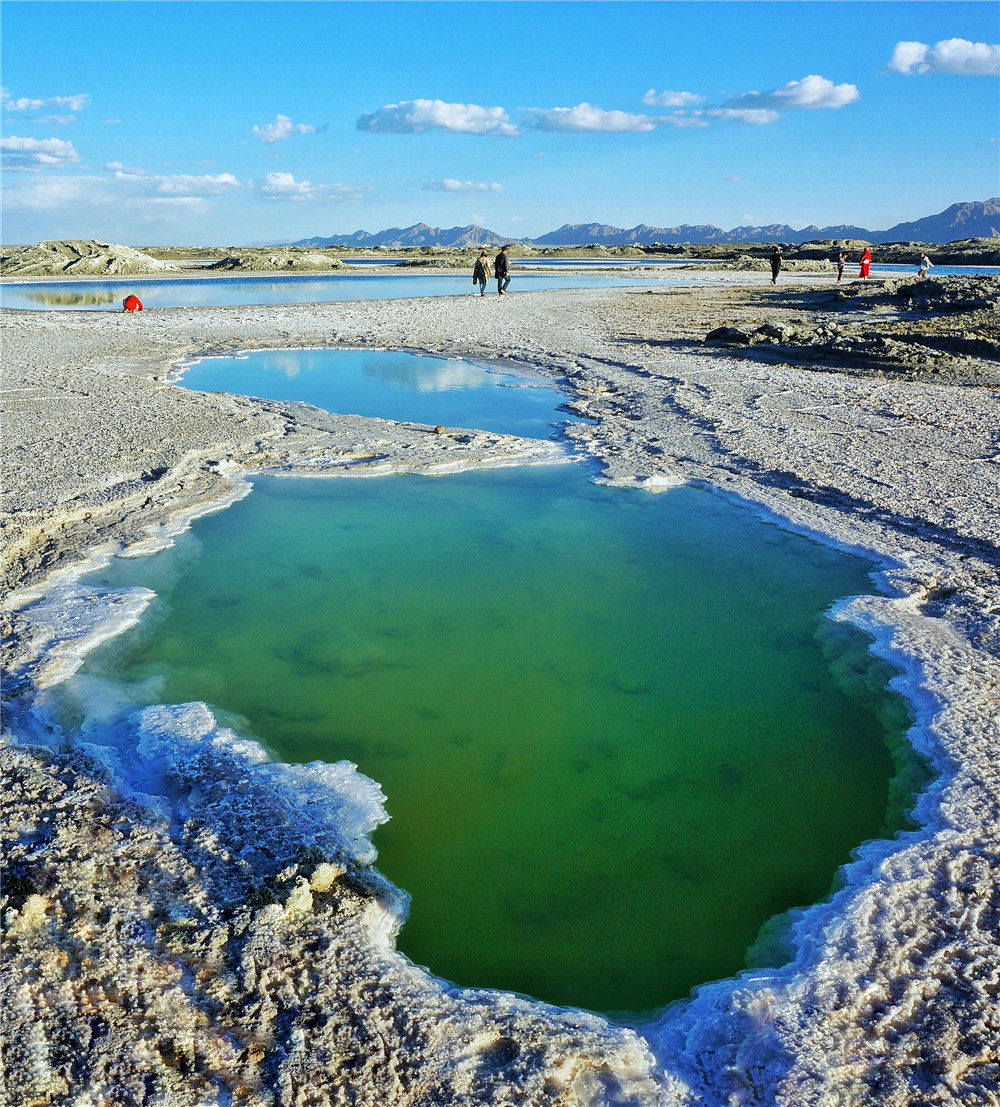 2017年8月,青海西宁,翡翠湖随着日光的不同,出现了不同是颜色。