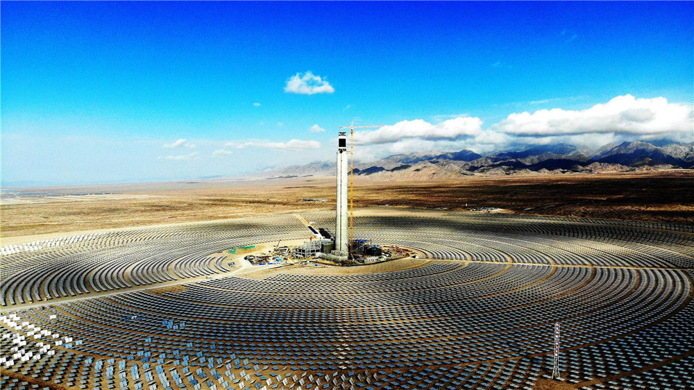 2018年10月13日,地处青海省海西州德令哈市的中控太阳能发电有限公司10兆瓦塔式熔盐光热电站。位于中国西部的青海省,有“三江源”“中华水塔”之称。如今,青海清洁能源正在从“风生水起”走向“风光无限”。青海太阳能资源约占中国的11%,光热资源平均年辐射总量可达每平方米5860—7400兆焦耳,仅次于西藏;同时,该省可用于新能源开发的荒漠土地面积约10万平方公里,装机规模可达35亿千瓦,折合年发电量约5.6万亿千瓦时,是三峡电站年发电量的56倍。