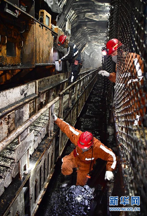11月26日,在上湾煤矿12402综采面内,工作人员对采煤机进行检修。 新华社记者 邵瑞 摄