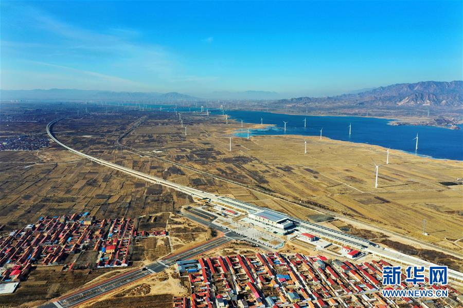 11月27日拍摄的京张高铁东花园北站(无人机拍摄)。京张高铁东花园北站装饰装修工程已经完工,日前整体亮相。京张高铁沿线各车站即将竣工,为下一步运行实验奠定基础。新华社记者邢广利摄