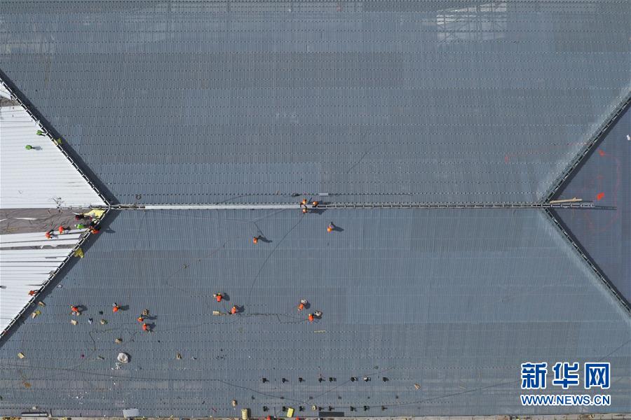 工人在宣化北站施工(5月30日无人机拍摄)。新华社记者邢广利摄