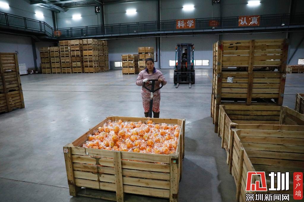 一位工作人员正在运送橙子。
