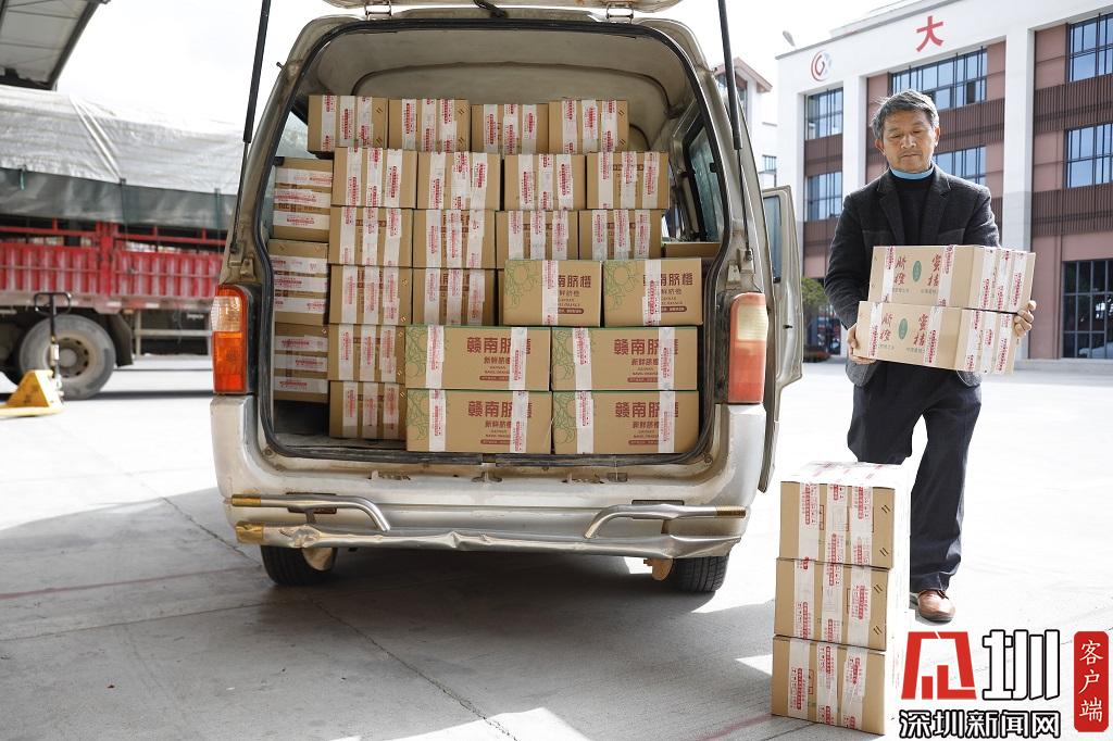 寻乌物流园中,脐橙被打包运往各地。