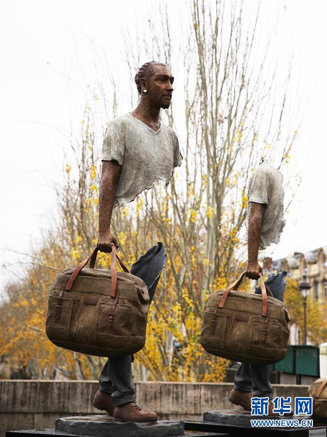 这是11月27日在法国巴黎街头拍摄的雕塑作品。新华社记者高静摄