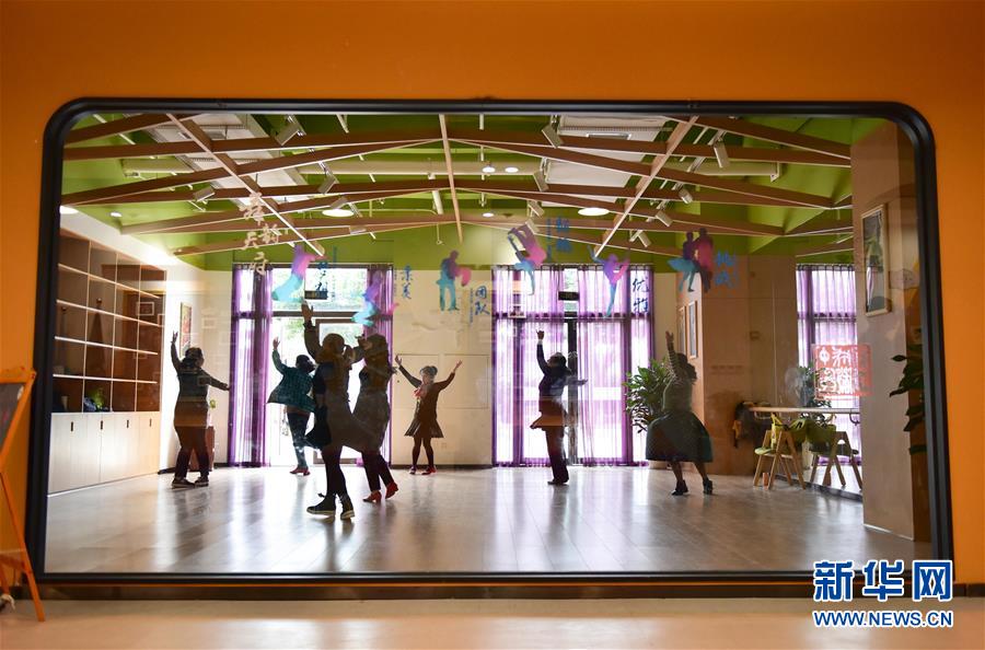11月13日,市民在成都金牛区新桥社区党群服务中心内跳舞。