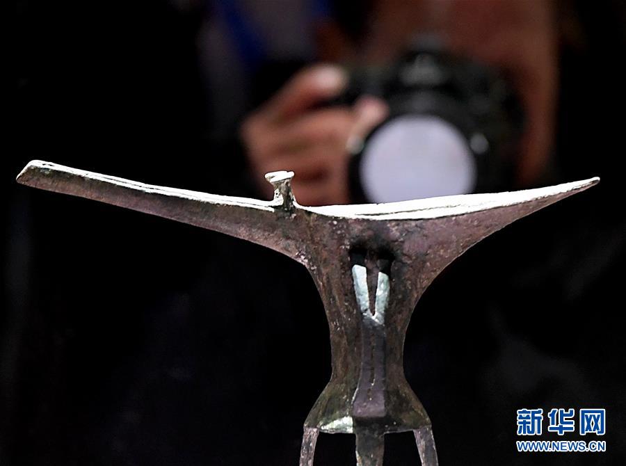 10月19日,参观者在二里头夏都遗址博物馆内拍摄展品“乳钉纹铜爵”。新华社记者李安摄