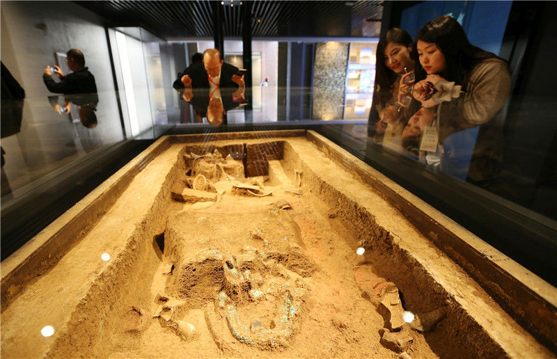 2019年10月19日,河南洛阳,二里头夏都遗址博物馆。观众在观看当年的考古现场。