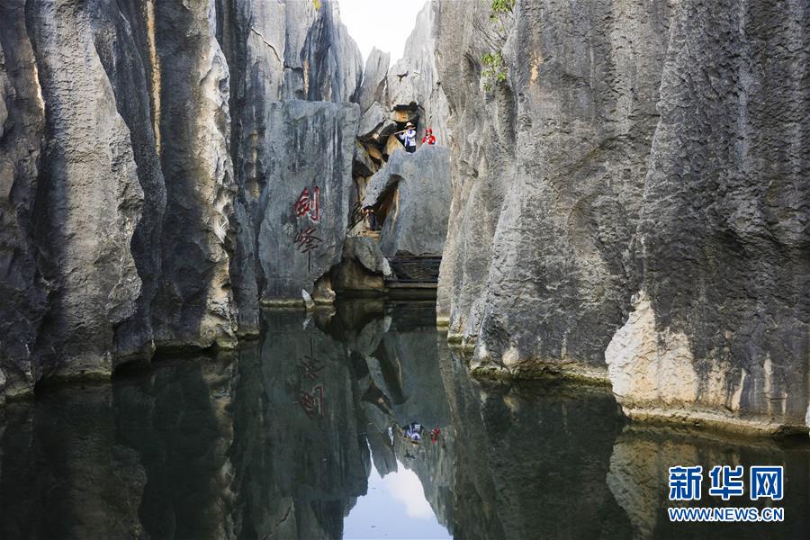 石林景区剑锋池景色(11月27日摄)。新华社记者兰红光摄