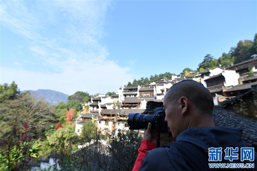 曹加祥在篁岭村采风(11月6日摄)。新华社记者张浩波摄