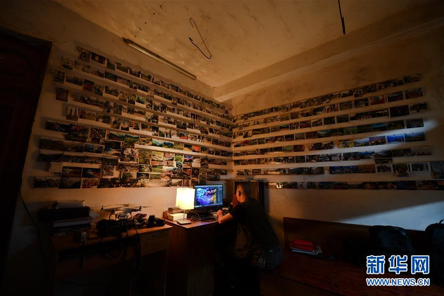 11月6日,乡村摄影师曹加祥在篁岭村自己的工作室内整理图片。新华社记者胡晨欢摄